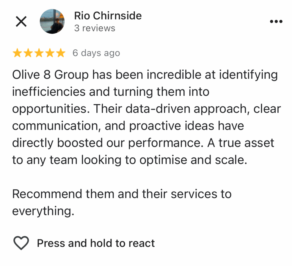 After implementing phase 1 changes, we ran analytics throughout September 2025, comparing them to the previous month’s metrics. Olive 8 Group’s targeted interventions drove impressive performance lift in October 2025 compared to July:
